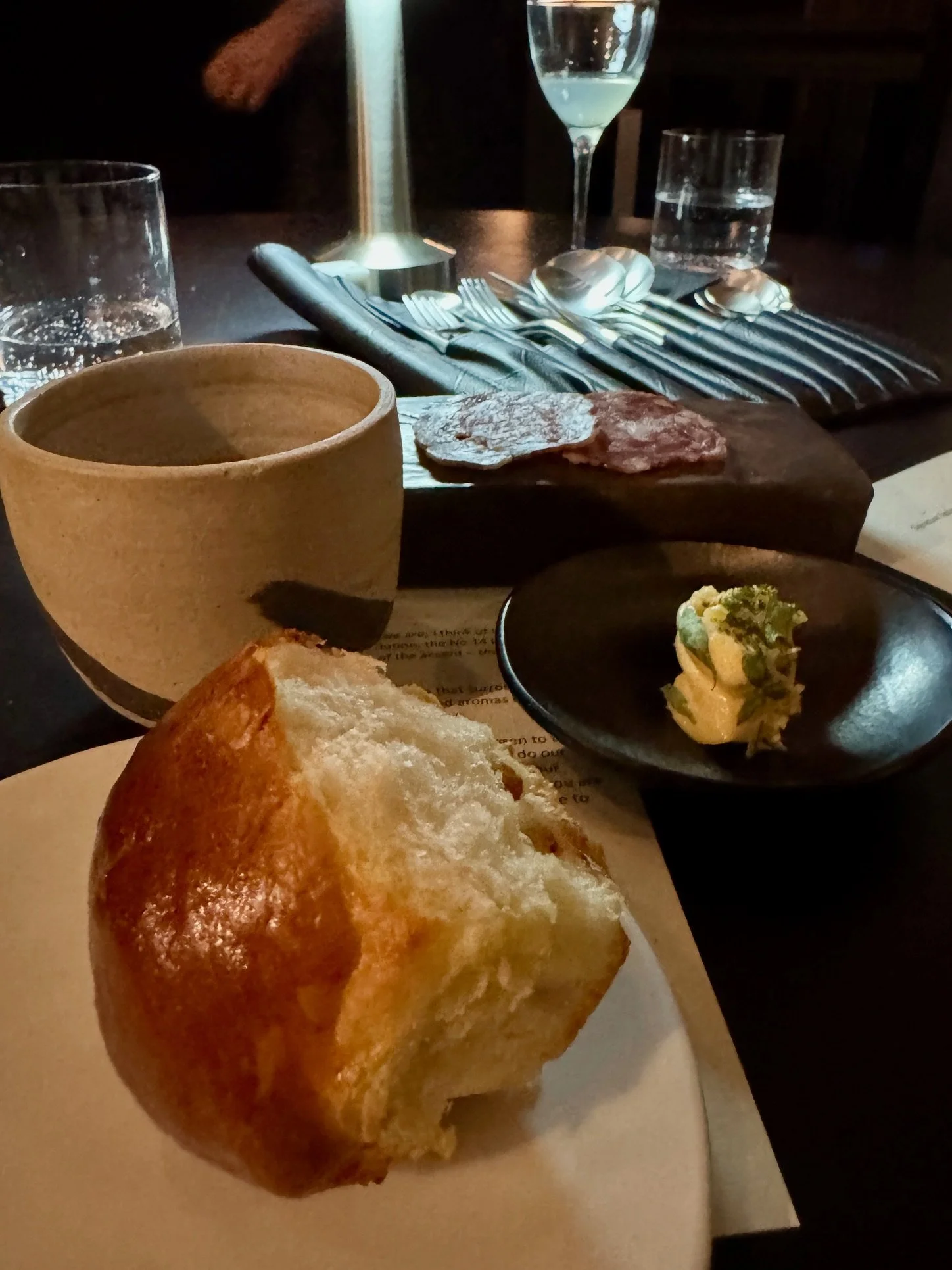 That said, the next two courses are like a massage for the soul with the Bovril of my dreams ‘Welcome Broth’ from roasted bones and more venison in salami, alongside milk loaf and cultured butter.