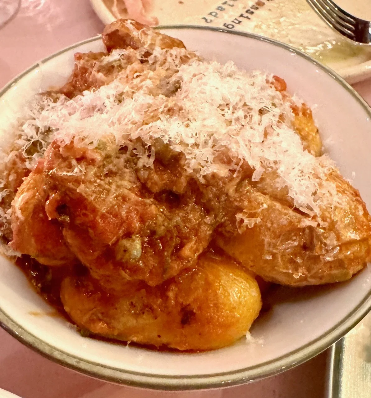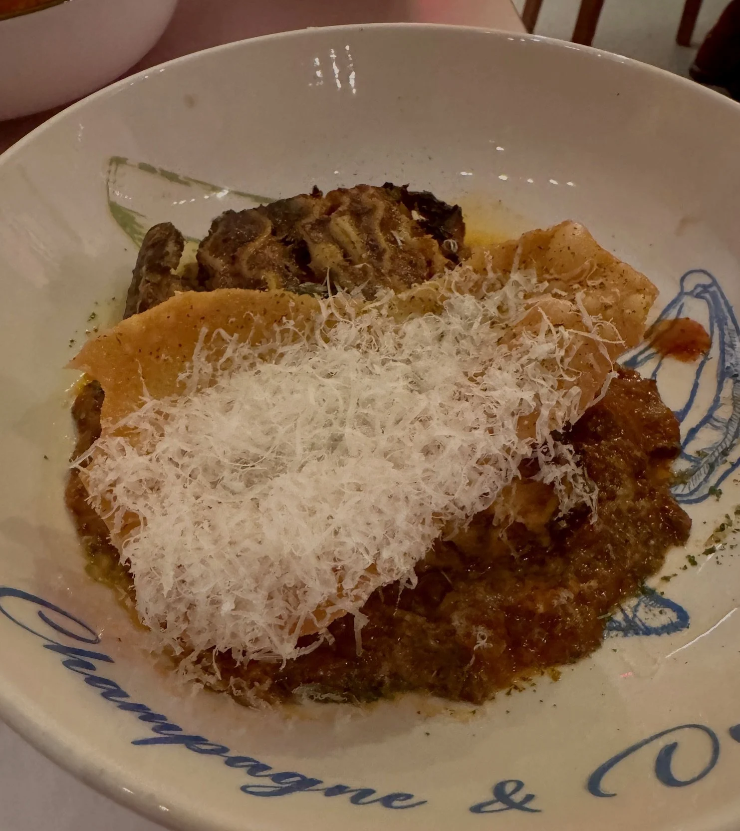 Four dishes land at once; the star being ‘crispy lasagne’ with sweet, melt-in-the-mouth 32-hour, low and slow ox cheek ragu. It sits under a seemingly suet-powered, meltingly brittle wafer and heavy dusting of Parmesan. It’s already a contender for the top ten dishes of 2026.