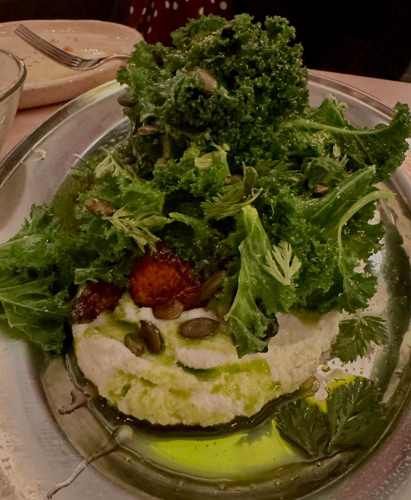Fire roasted Carrots, Kale, Whipped Ricotta, Fennel Seed + Thyme Honey, Salted Pumpkin Seeds
